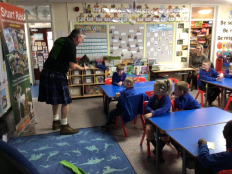 P2 had great fun listening to the fabulous author, Stuart Reid.