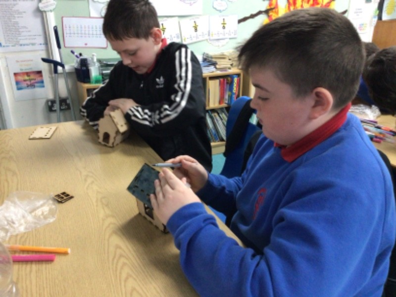 The children built their bug hotels putting all the pieces together and coloured them.