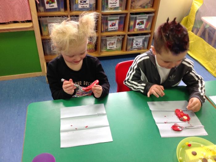 We've had an exciting day - we had crazy hair, we decorated biscuits and we had a surprise visit from Golidilocks when we were playing in the playground. She messed up our classroom and ate Mrs Connolly's biscuit! Rascal!