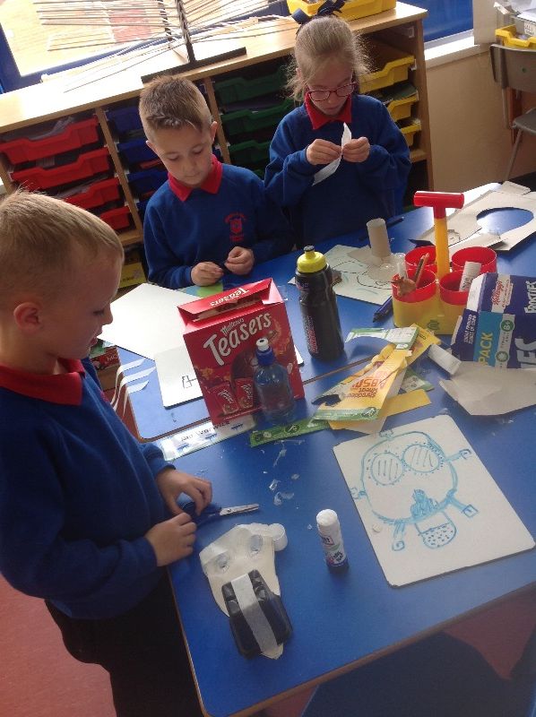 Thanks to all the children for bringing in materials. The primary four class made their own gas masks today as we are learning about World War 2. Thank you to a pupils grandparent who also allowed us to borrow his gas mask to show the class.