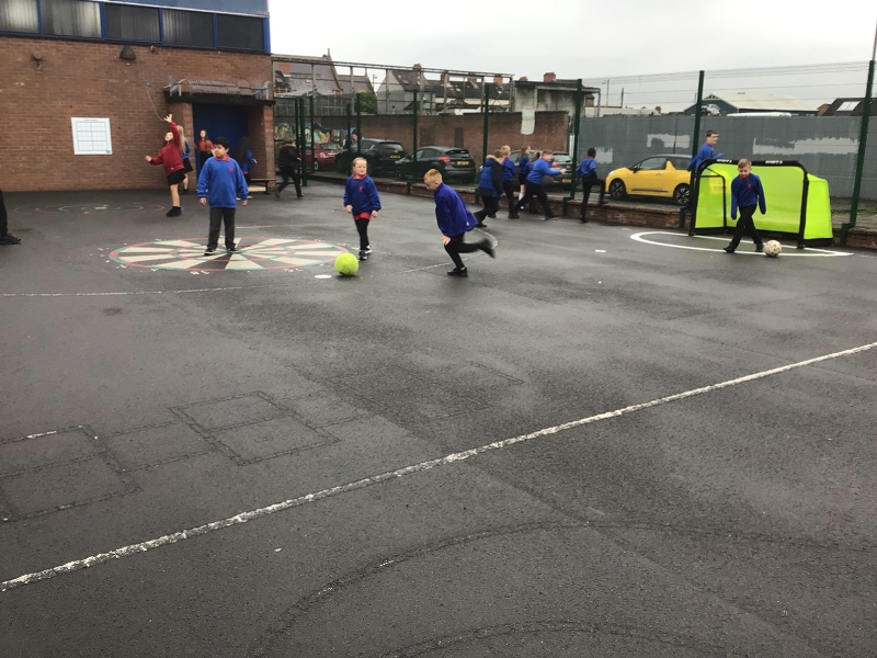 P5 have been enjoying outdoor play this week in a freshly painted playground, that has new football nets and also a new basketball net. It has also been wonderful to have break, and lunch, outside with Primary 6. It’s lovely that the children can play together again now class bubbles have been popped. A little rain didn’t stop us getting outside today either!