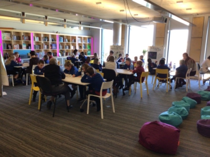 Today, P5 went on a trip to the Skainos Centre, to take part in a story writing workshop through Fighting Words NI. The children worked together to write chapter one of an exciting story about a magic pencil. They were then given some time to continue the story independently. The focus was on promoting children’s love of writing and it was wonderful to listen to the creative ideas the children had. They are an imaginative bunch!  There was even an illustrator there drawing the children’s ideas as they shared them. Their stories were printed out, with every child becoming a published author, as they are getting to take their own story home.