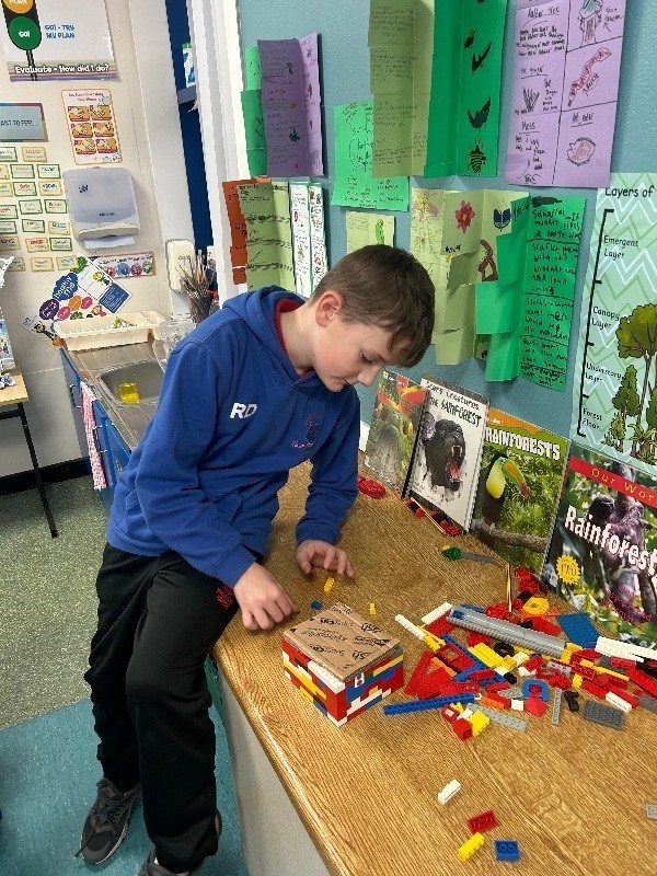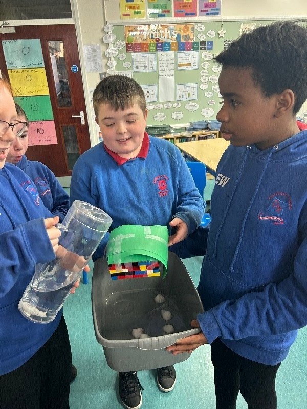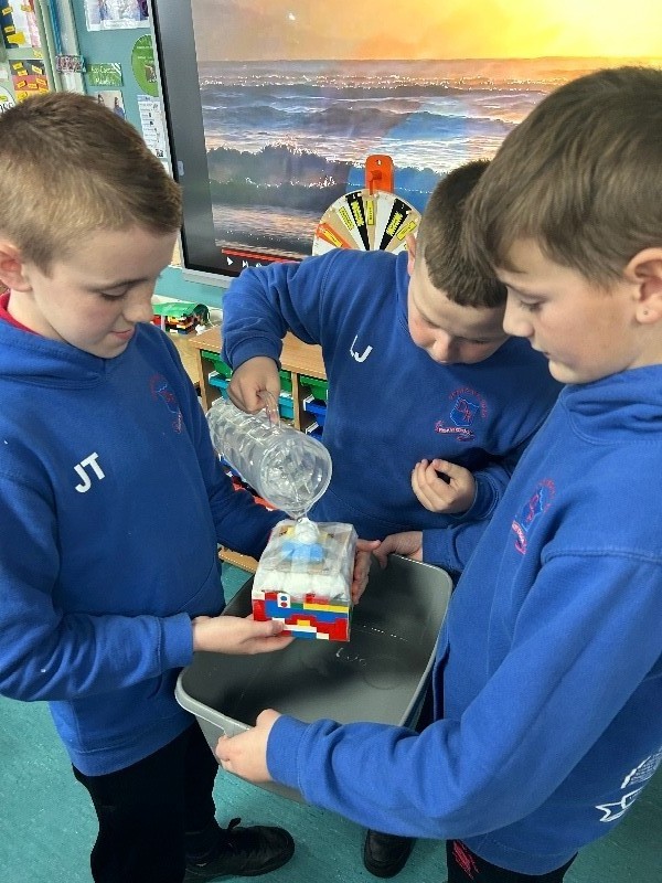 We built Lego houses and made roofs using a range of different materials to experiment what would let the least amount of water in.