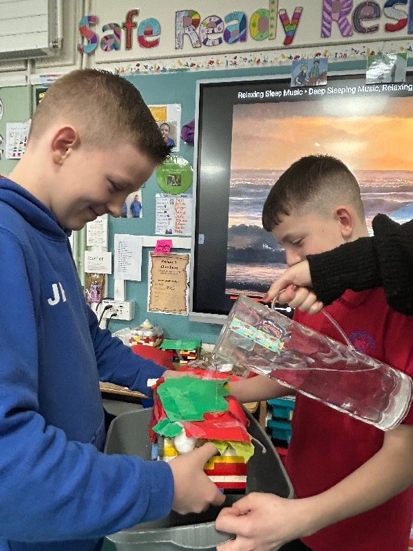 The class loved the competitiveness of this investigation and were so eager to see who’s house survived the rain fall!