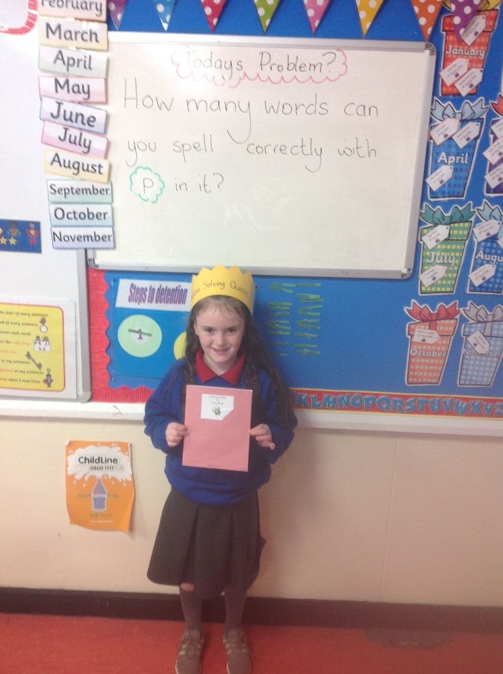 Today Codie-Lee was crowned Queen of our problem today. She spelt independently and correctly 46 words with the letter P in it. Well Done!