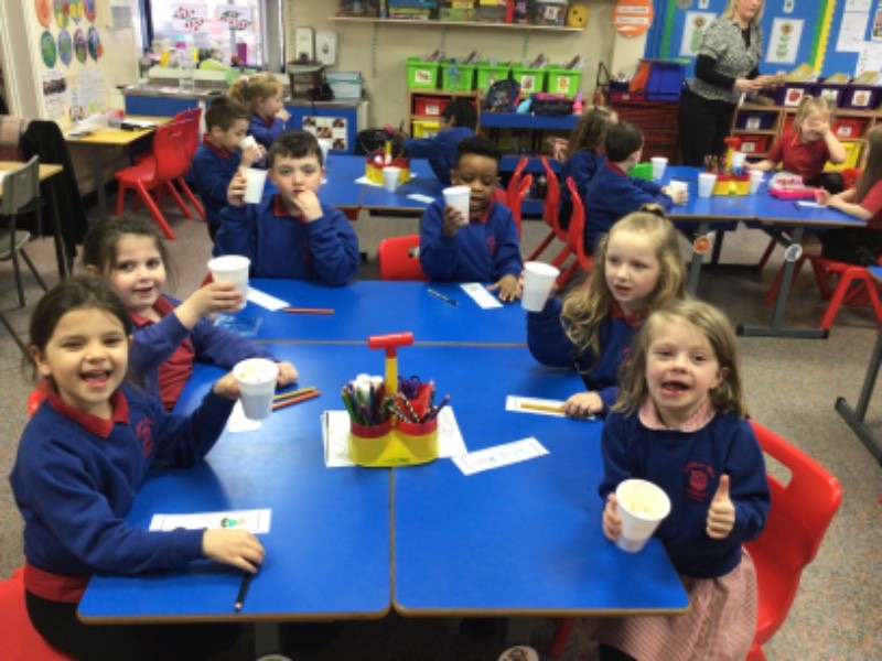 P2 enjoyed some time chilling out listening to a story on the tonie box. They then designed a front cover to match the story they listened to. We loved having hot chocolate and cookies as a treat too.